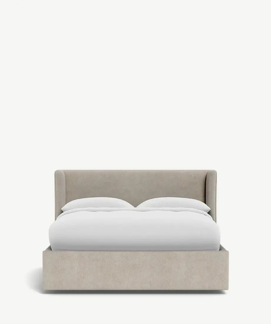- Upholstered in chenille-effect fabric.